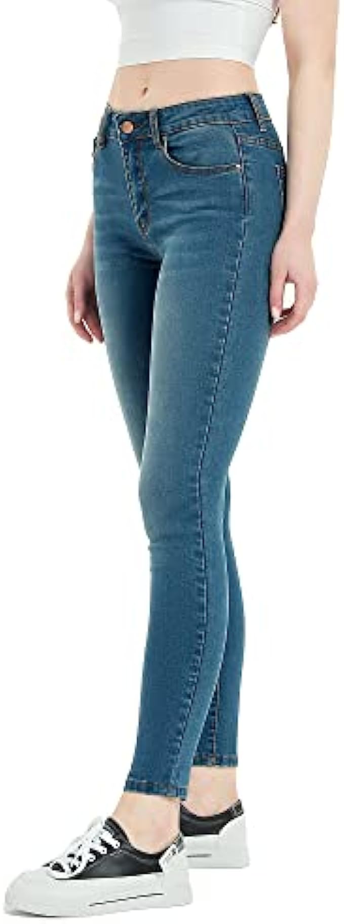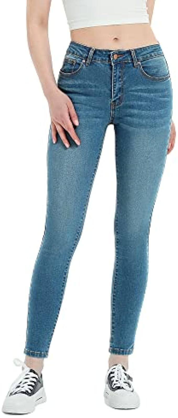 74.3% Cotton, 24.4% Polyester,1.3%Elastane Imported Button-End closure Machine Wash ✿ FEATURES:The skinny jeans for women features a mid-rise comfort waistband for better tummy control and a slim fit through the hip and thigh with skinny leg opening hugs your curves. ✿ CLASSIC STYLE:This classic jegging comes with timeless 5-pocket design, zipper flyer closure and distressed details, is a versatile yet classic look that attracts and connects with the modern sensibility of women of all ages. ✿ PREMIUM FABRIC:Fabric blended with spandex for stretch and comfort, dress up or down in all-day comfort with a slim, flattering fit that stretches but retains its shape.Even after repeated wearing, this slim fit jeans stays true to original form.